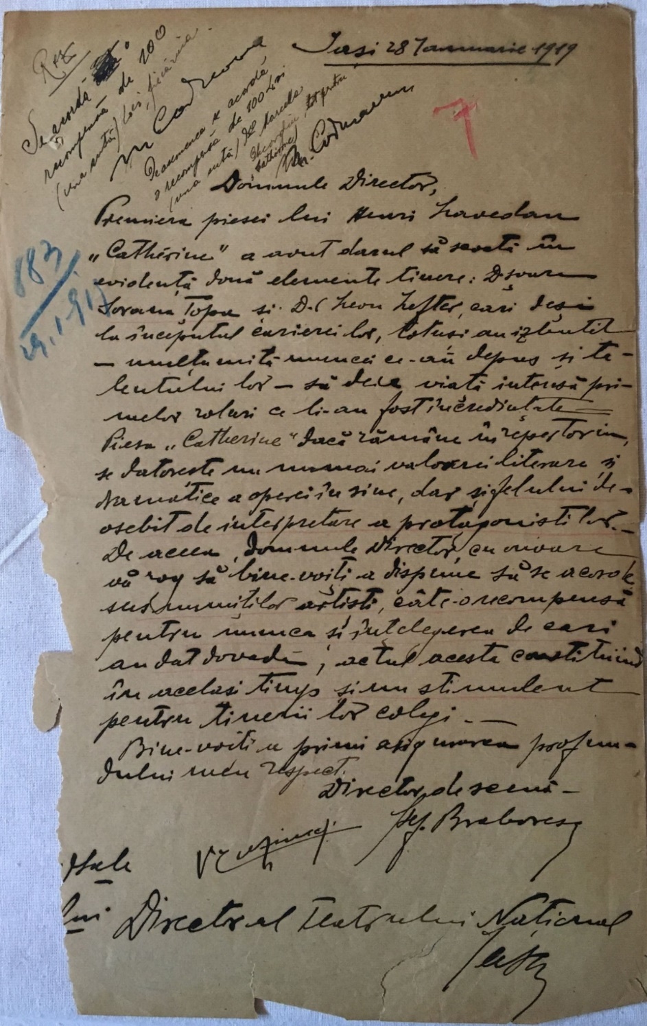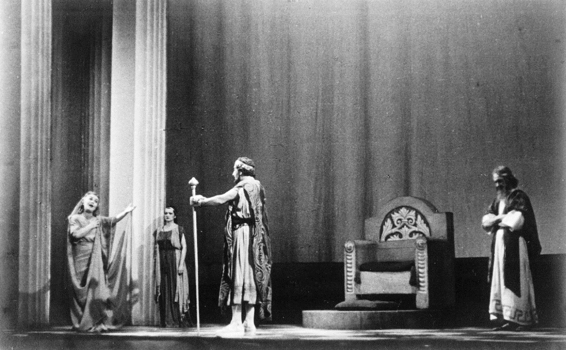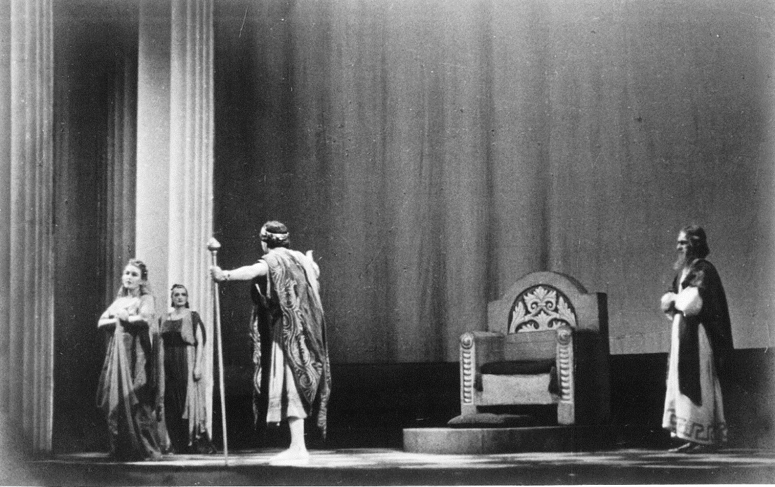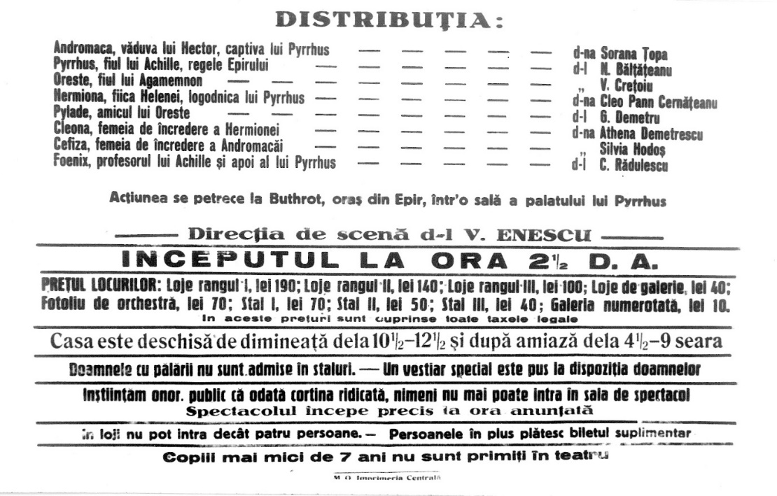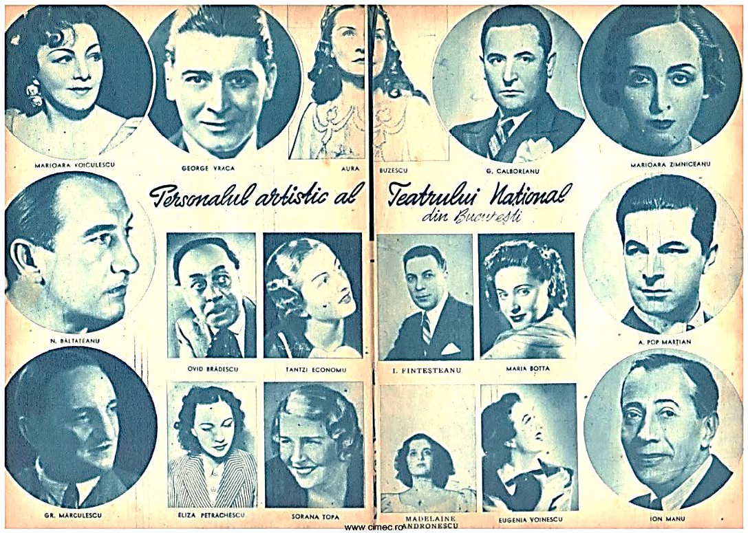 De la stânga la dreapta: Rândul 1 jos: N. Meicu, Aurel Ghițescu, C. Ramadan Rândul 2 mijloc: D-na Cassian, Sorana Țopa, Natalia Profir, Lucia Popescu, Laura Vrânceanu Rândul 3 sus: P. Petrone, Ion Profir, Margareta Cauteș, Ștefan Constantinescu, Dimitrie Iov Fotografie din colecția Muzeului Național al Literaturii Române din Iași, Colecția muzeală „Istoria teatrului românesc”