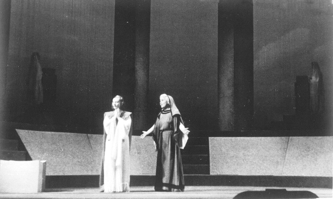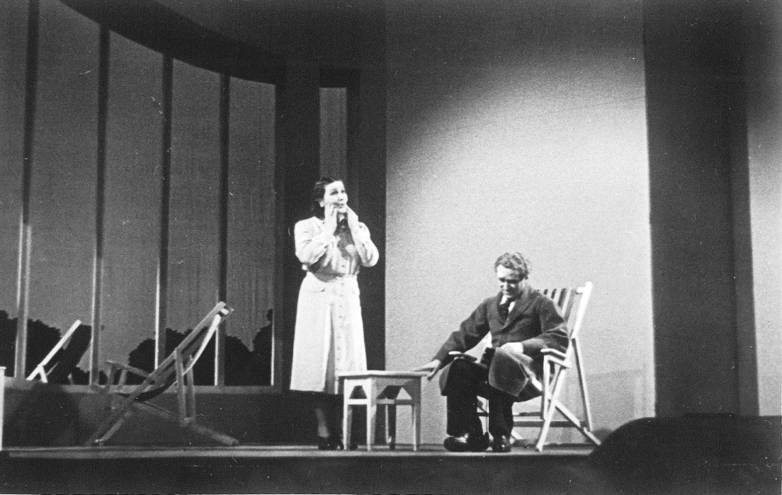G.M. Zamfirescu și Sorana Țopa în repetiții la Domnișoara Nastasia, fotografie din colecția Muzeului Național al Literaturii Române din Iași, Colecția muzeală „Istoria teatrului românesc”