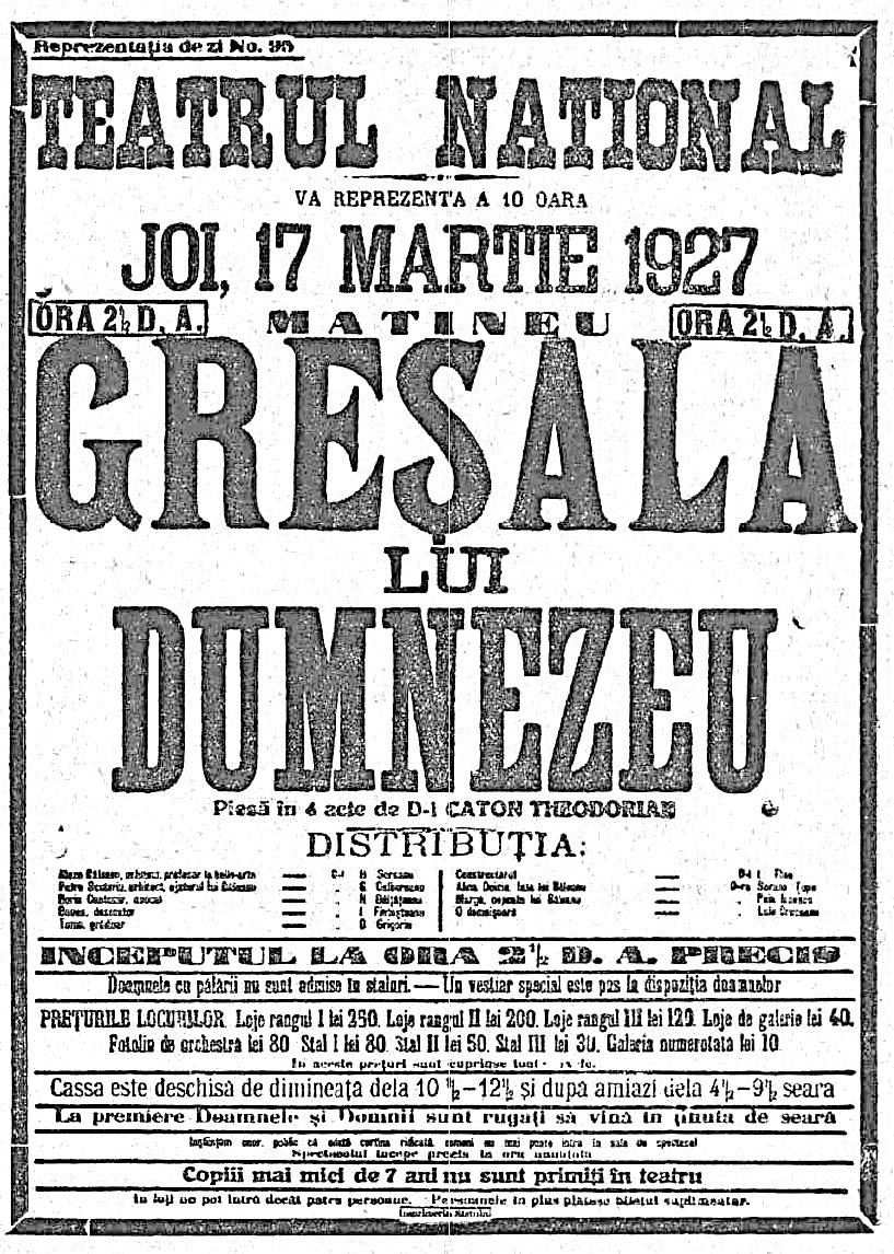 Țopa, Sorana, Călătorie în întuneric (scrisă în 1930), Editura SOCEC & Co., S. A. R. (Biblioteca Teatrului Național, Seria III, Nr. 32), București, 1943.